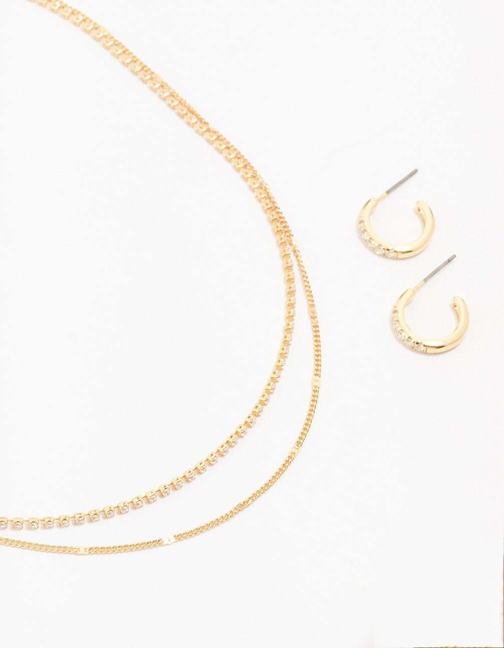 • Gold Plated Cubic Zirconia Dainty Hoop & Necklace Set - link has visual effect only