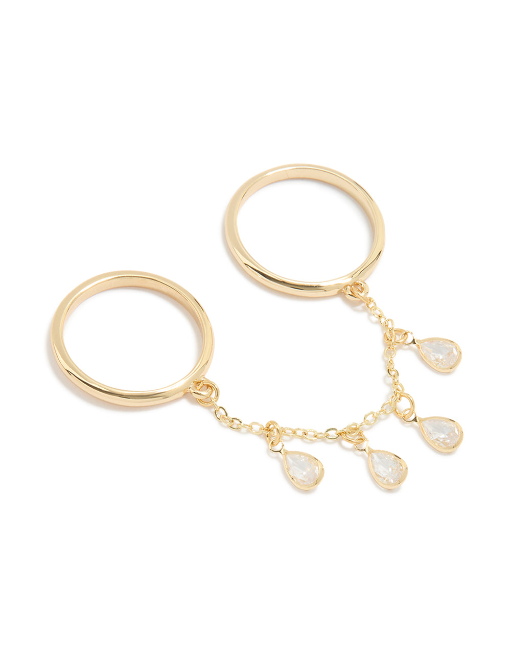 Gold Plated Cubic Zirconia Drop Chain Ring