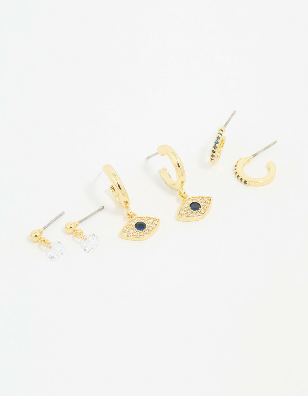 Gold Plated Cubic Zirconia Evil Eye Earrings 3-Pack