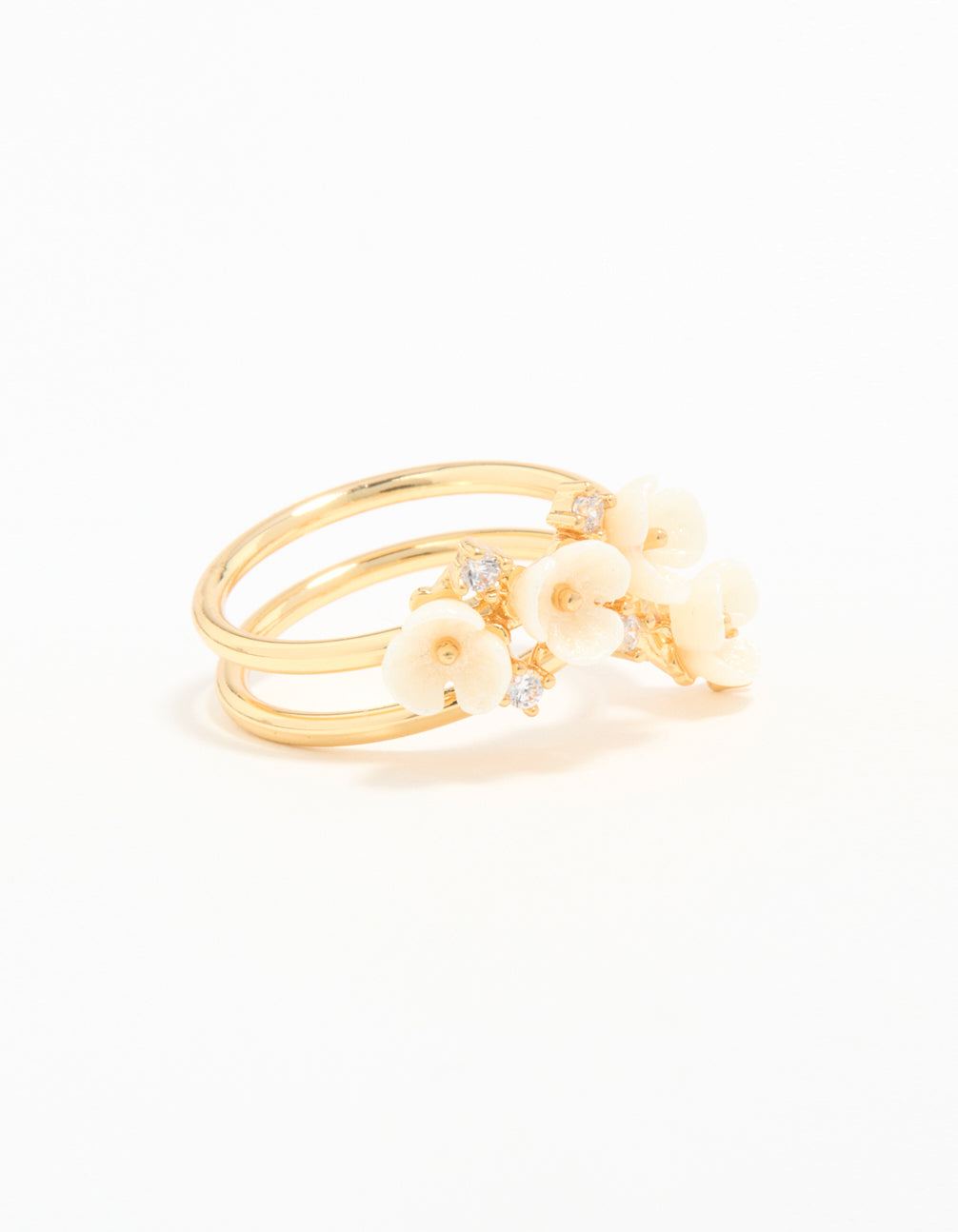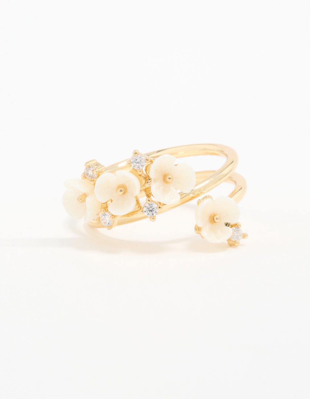 Gold Plated Cubic Zirconia Flower Wrap Ring