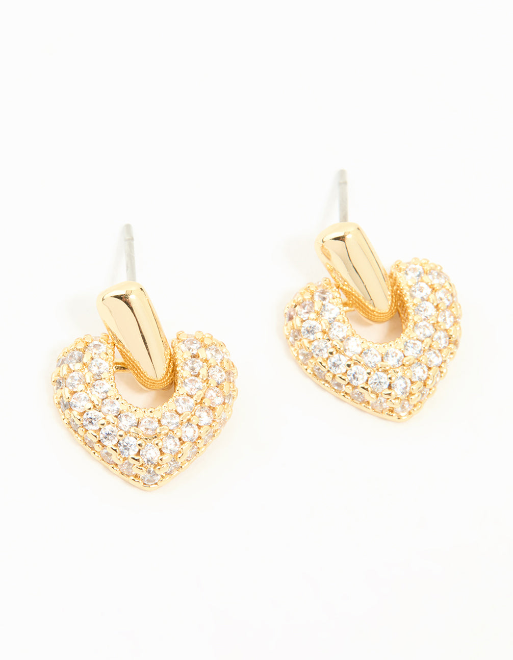 Gold Plated Cubic Zirconia Heart Drop Earrings