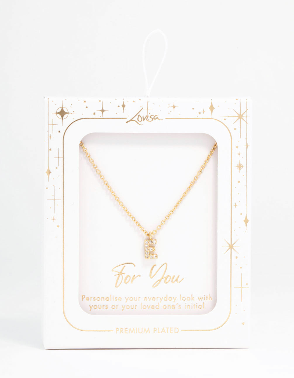 • Gold Plated Cubic Zirconia Letter E Necklace - link has visual effect only