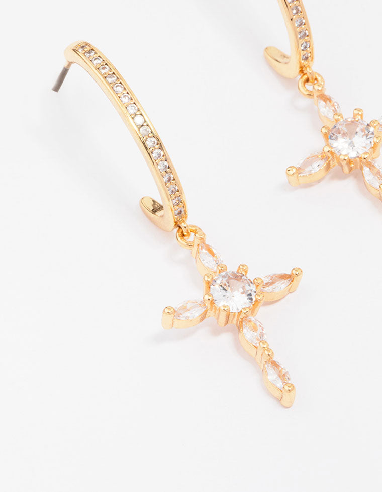 Gold Plated Cubic Zirconia Marquise Cross Drop Earrings Gold Plated Cubic Zirconia Marquise Cross Drop Earrings Gold Plated Cubic Zirconia Marquise Cross Drop Earrings