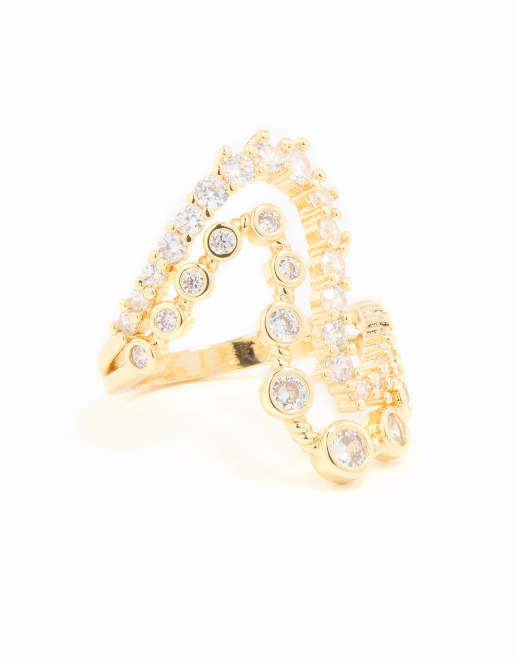 Elevate your accessory game with this Gold Plated Cubic Zirconia Open Wave Ring. Crafted with a sleek gold-plated finish, this wave-shaped ring is adorned with shimmering cubic zirconia crystals, giving it a contemporary yet timeless appeal. Whether you're heading to brunch, a dinner party, or simply want to add a touch of glamour to your everyday outfit, this ring is your perfect companion. Pair it with delicate gold jewellery for a cohesive look or let it stand out as a statement piece. Its open wave design adds a modern edge, making it ideal for layering or wearing solo. Versatile, stylish, and easy to wear, this ring is sure to become your go-to for any occasion!