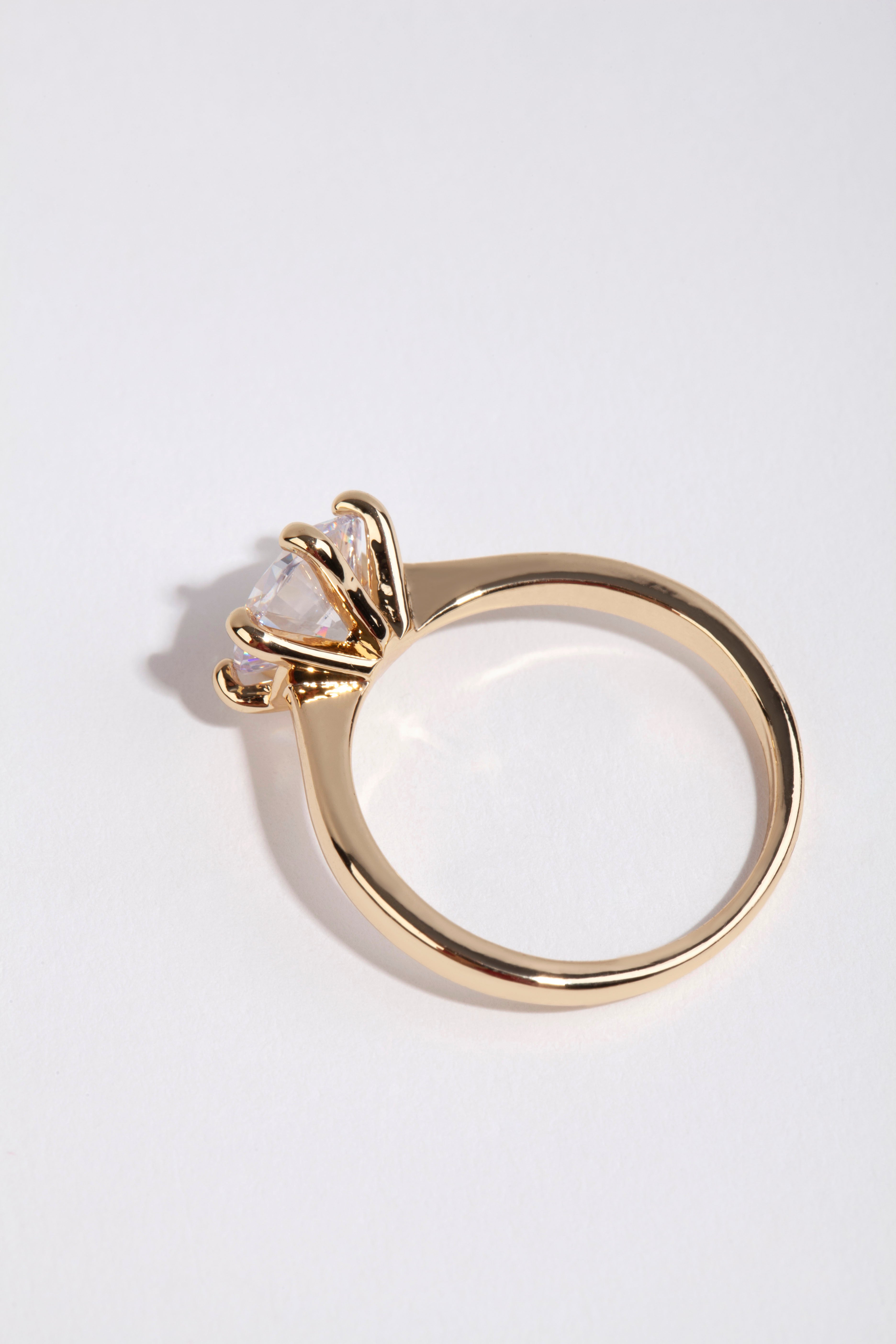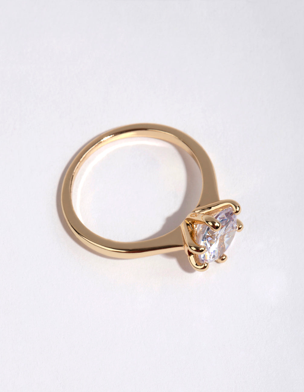 Sparkle with all the facets of a true diamond with cubic zirconia. These lab-created crystals are engineered to be indistinguishable from diamonds to the naked eye. This beautiful gold-toned ring features a perfect-cut cubic zirconia.