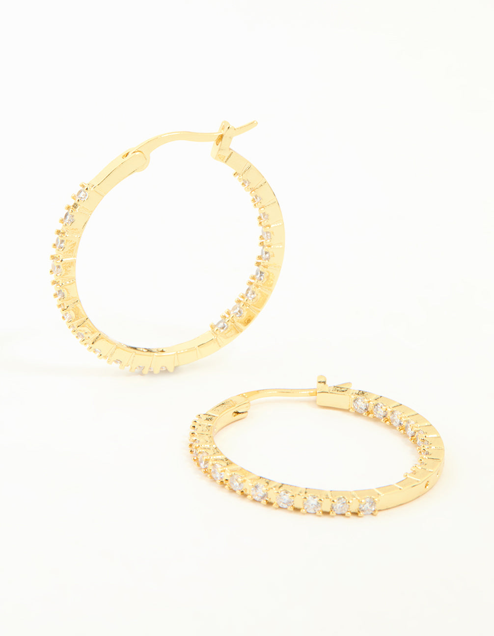 Gold Plated Cubic Zirconia Skinny Large Hoop Earrings