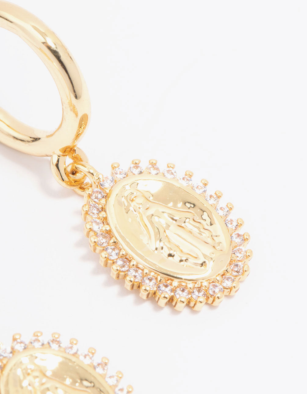 Gold Plated Diamante Classic Coin Hoop Earrings