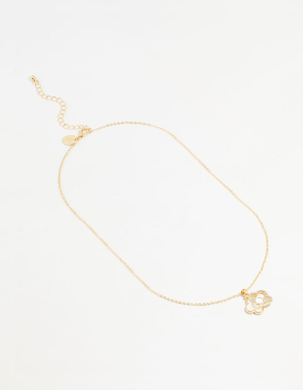 Gold Plated Diamante Outline Pendant Flower Necklace