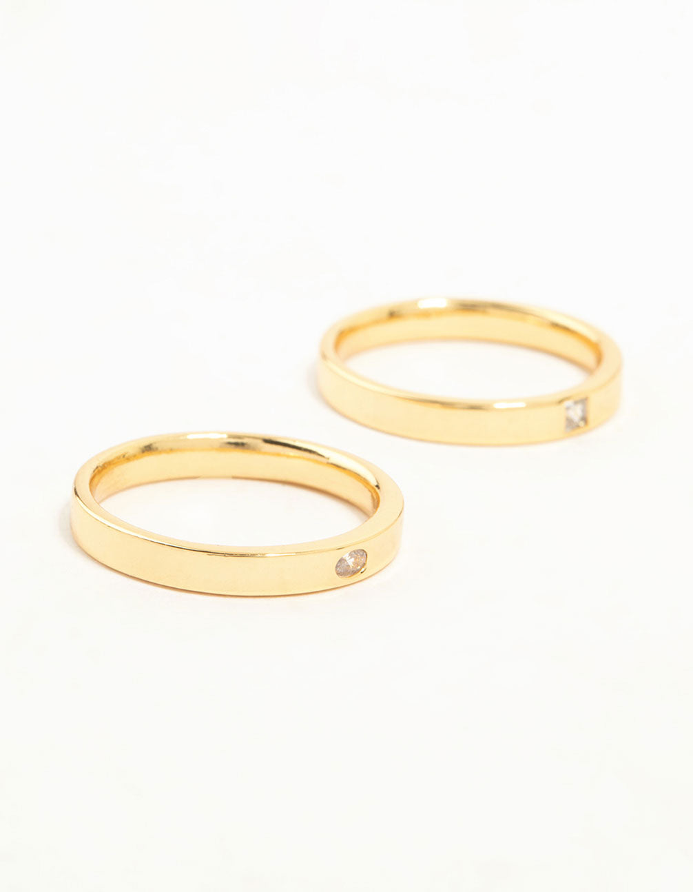 Gold Plated Fine Cubic Zirconia Band Rings 2-Pack