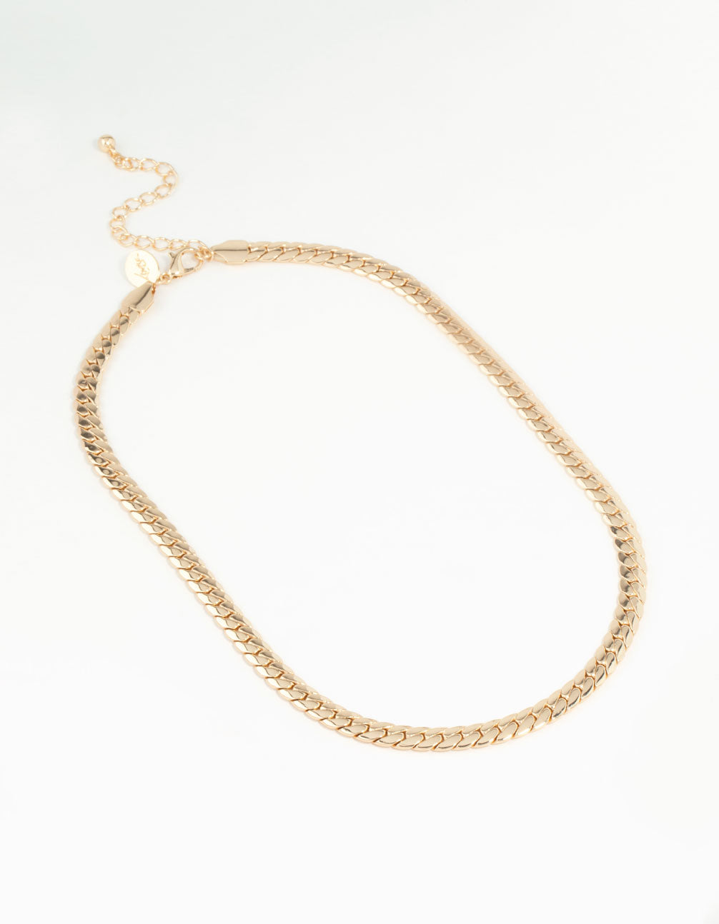 Transform your style with this beautiful gold-plated flat curb chain necklace. Its radiant shine complements any outfit, making it the perfect necklace for everyday wear.