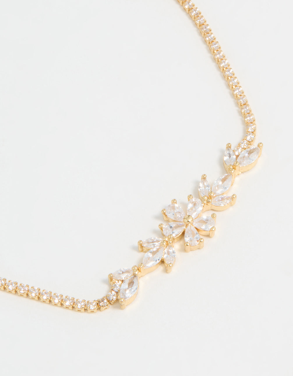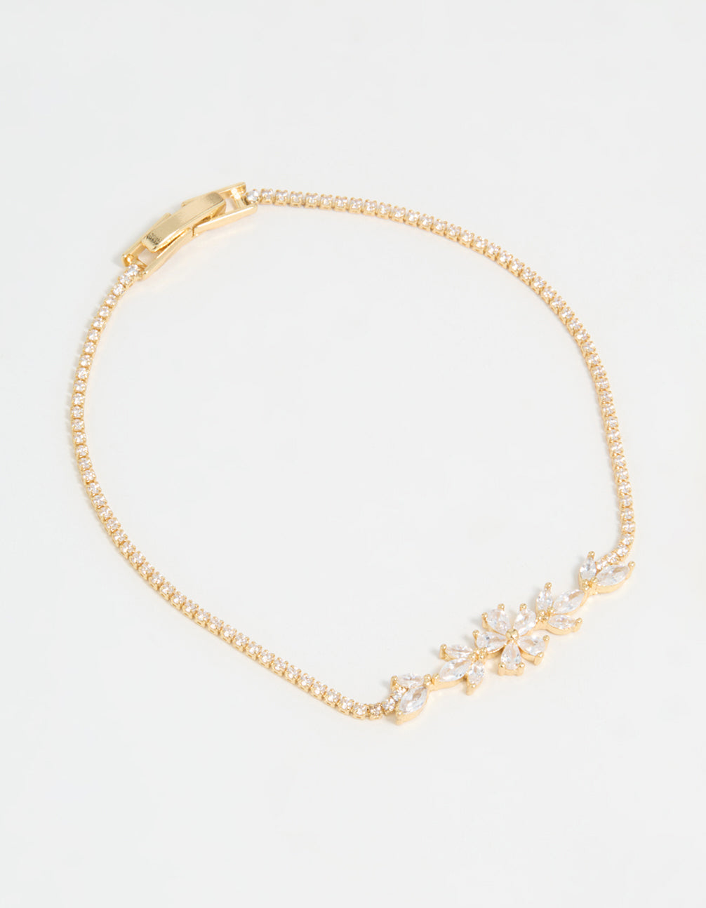 Upgrade your wrist game with this stunning Gold Plated Flower Cupchain Bracelet! This bracelet combines luxe gold plating with delicate diamante flower charms and cupchain links. This bracelet adds sophistication and sparkle to your ensemble.