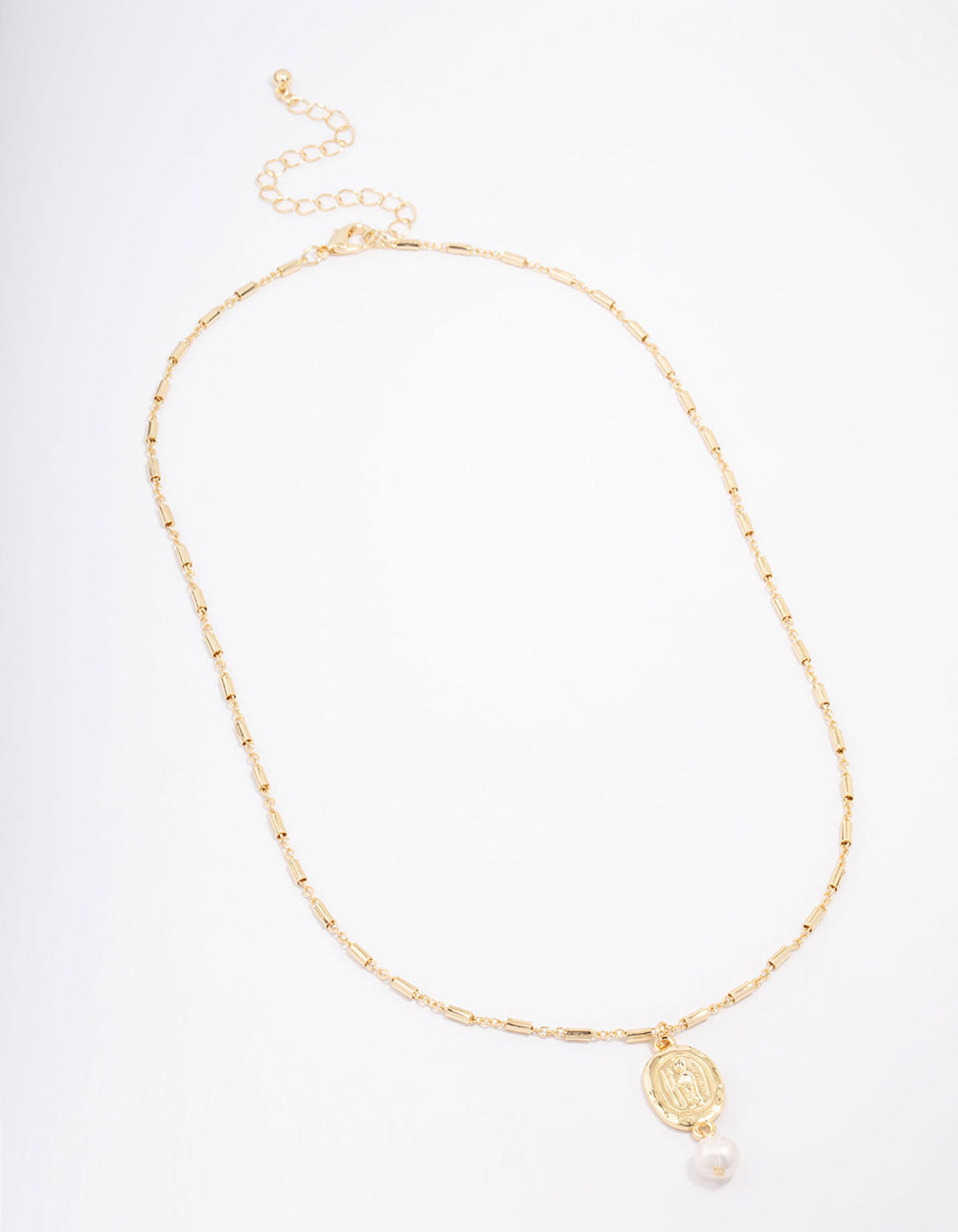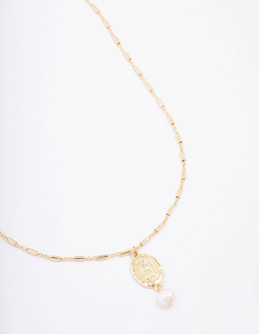 Gold Plated Freshwater Pearl Coin Pendant Necklace