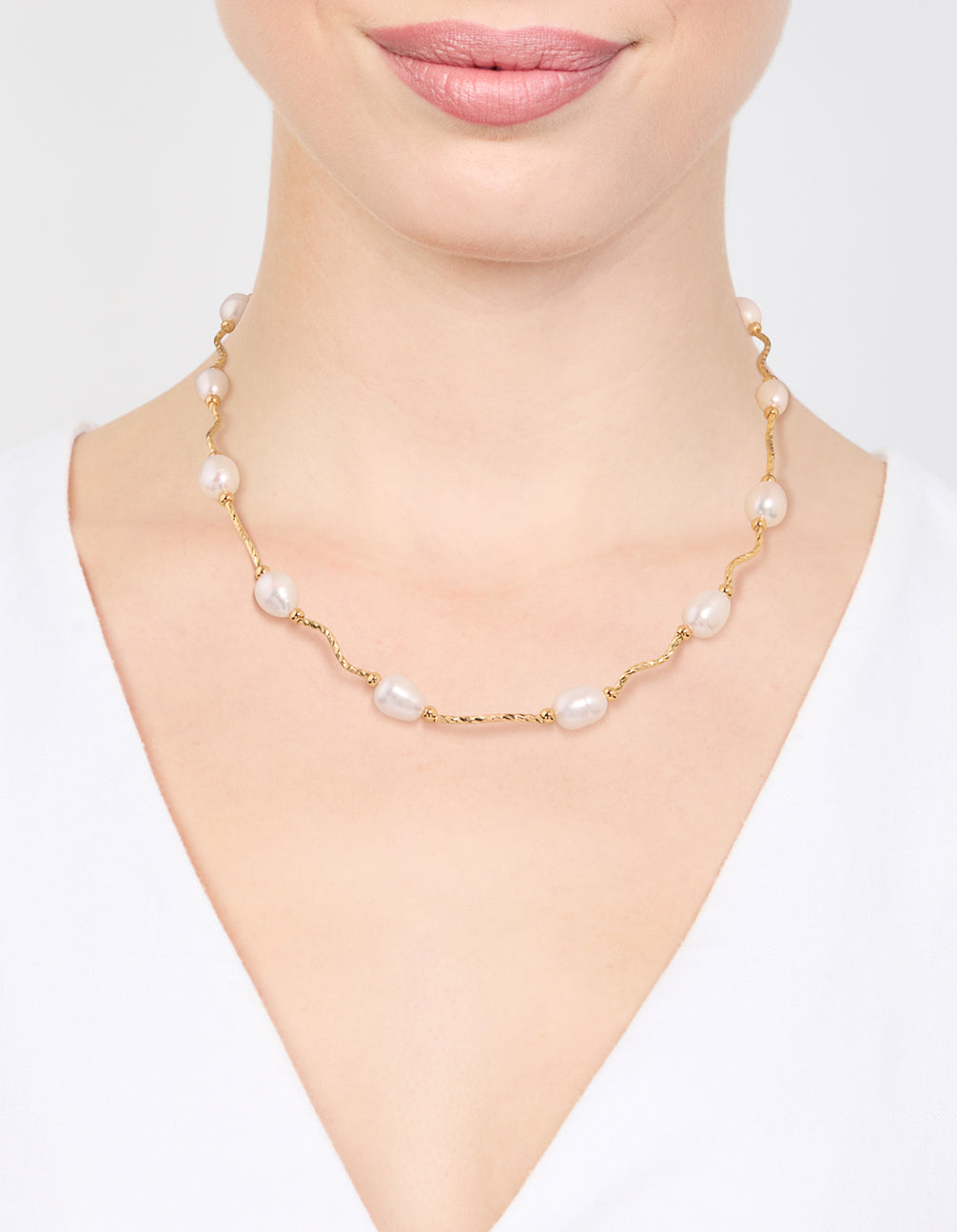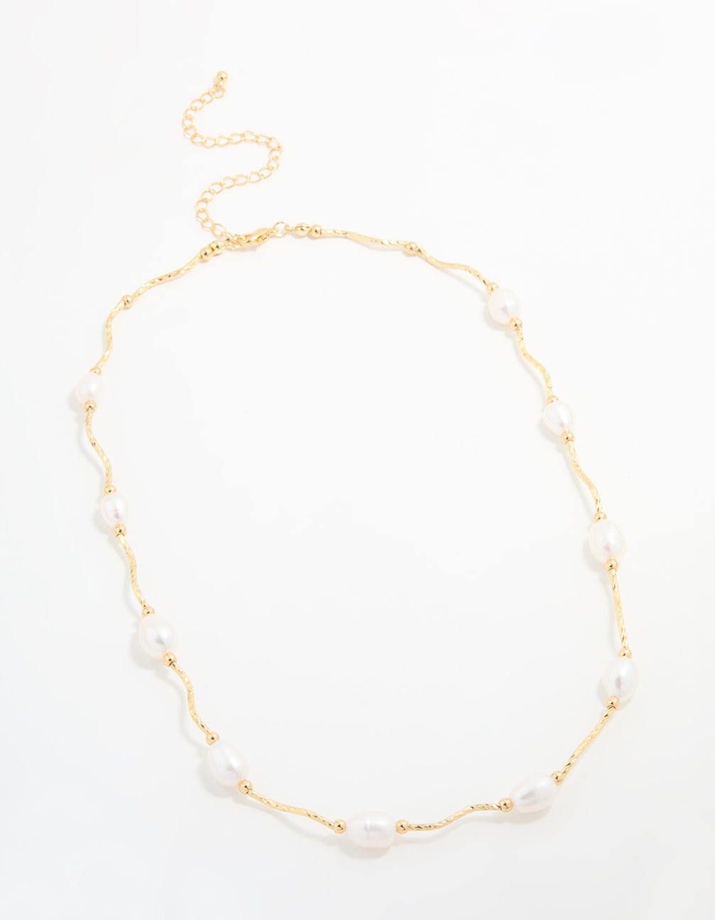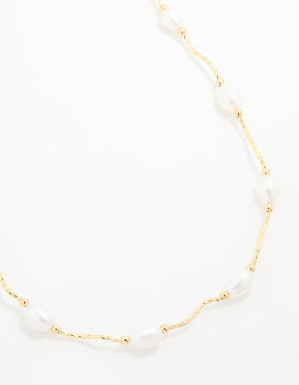 Upgrade your style with the Gold Plated Freshwater Pearl Necklace! This exquisite piece features a lustrous freshwater pearls and an elegant gold plated base, perfect for any occasion.