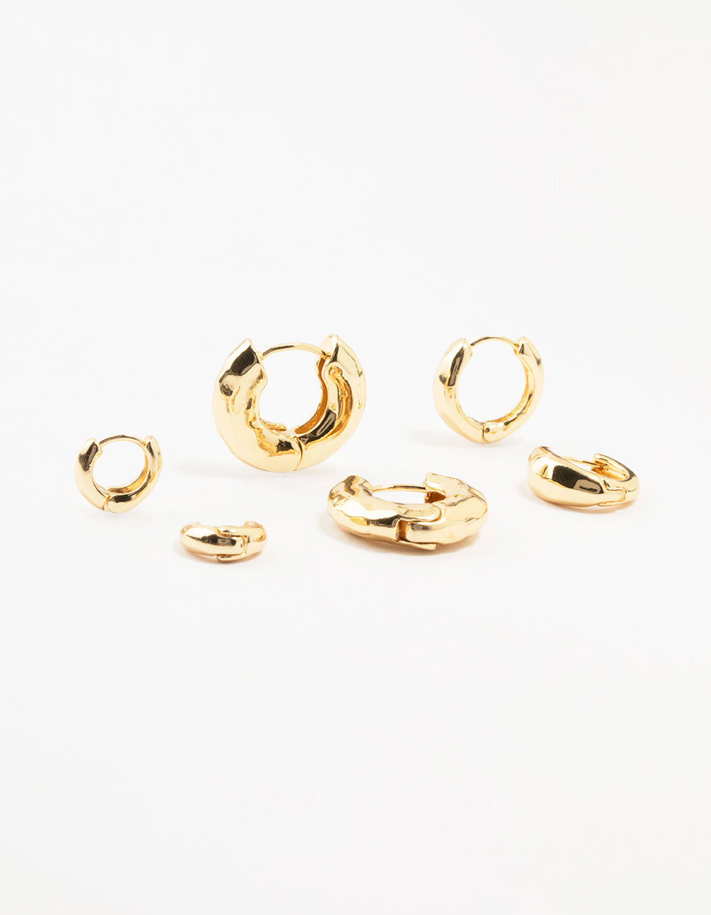 Gold Plated Brass Hammered Graduating Hoop Earrings 3-Pack