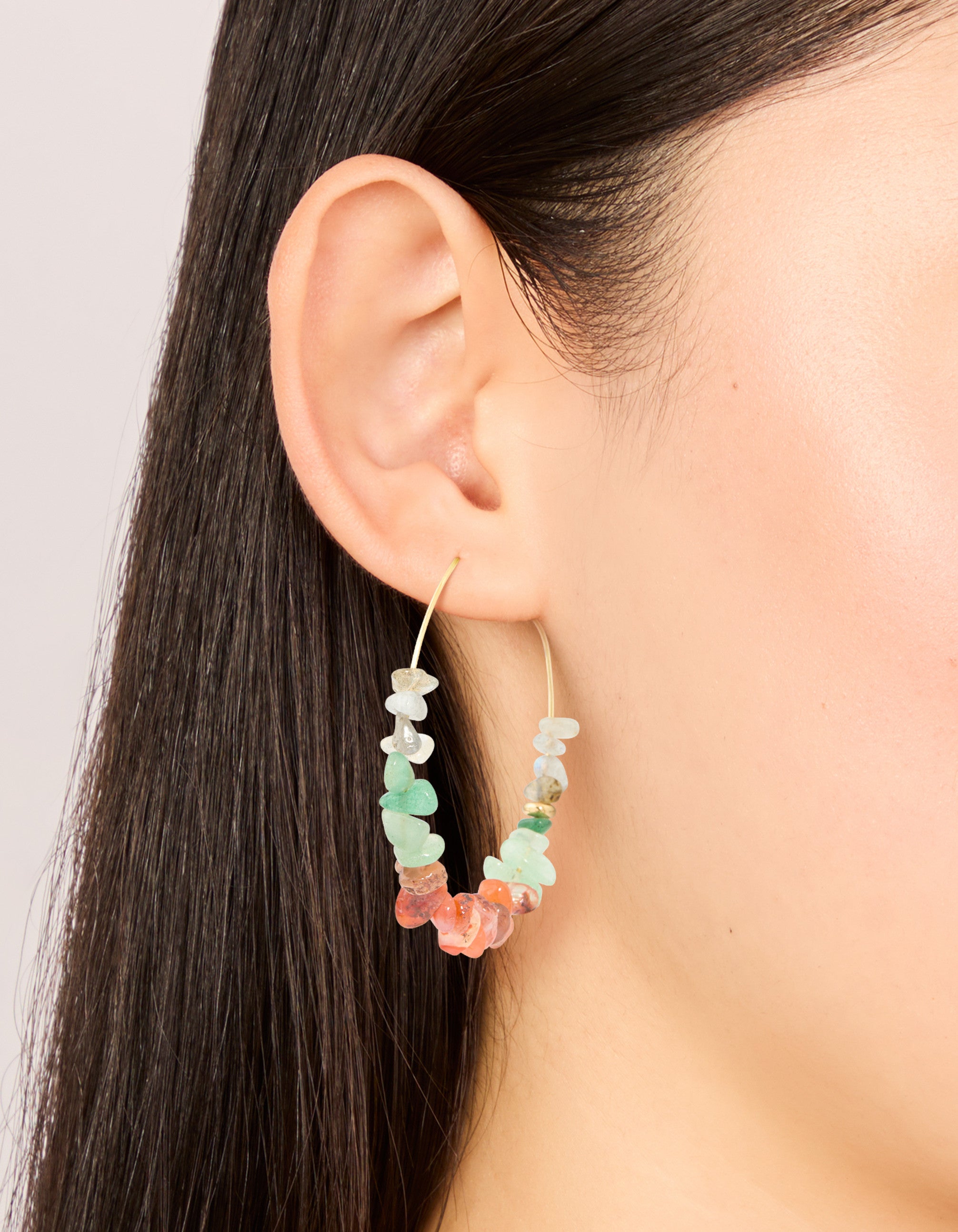 Gold Plated Multicoloured Semi Precious Stone Chip Hoop Earrings