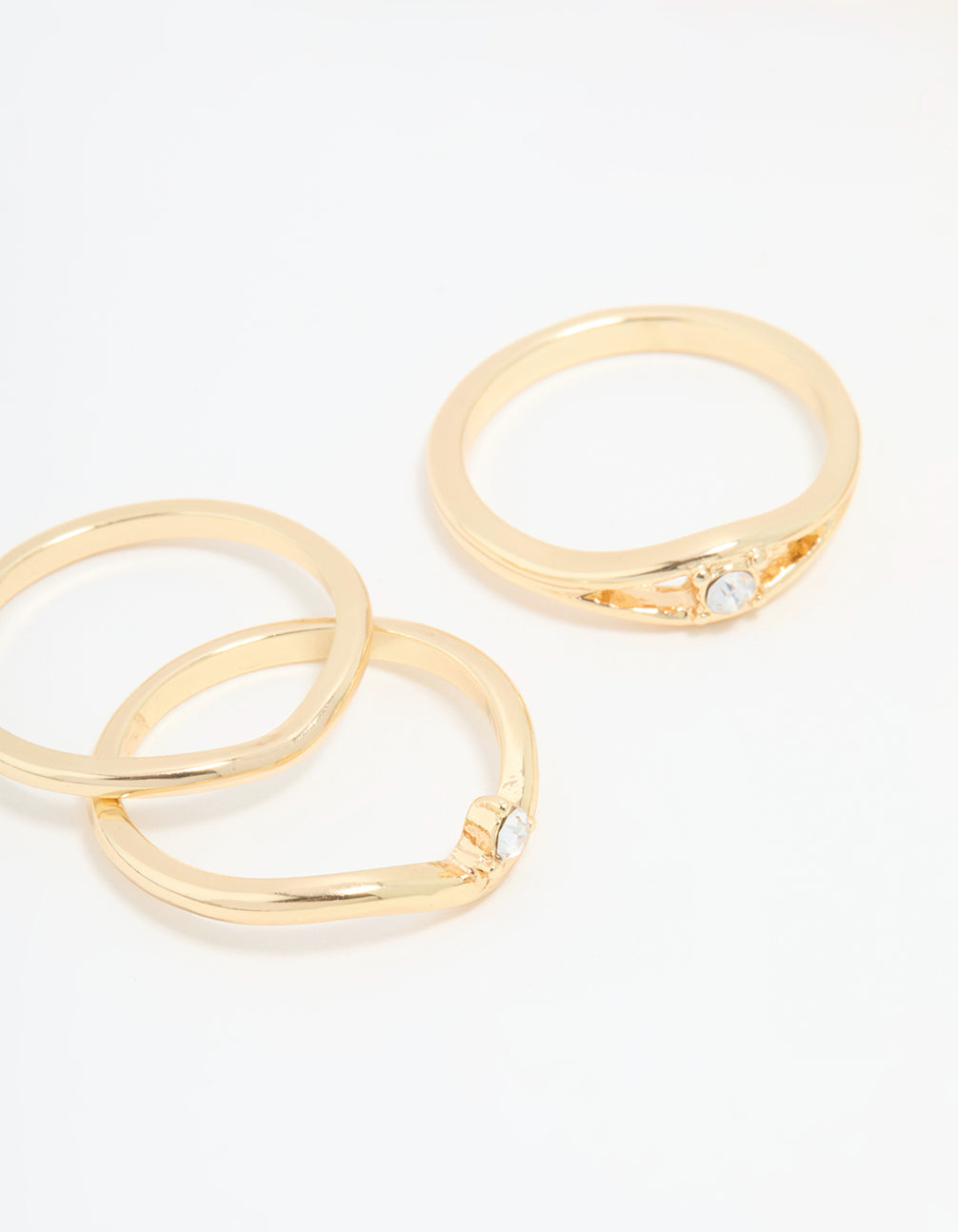 Gold Plated Organic Wave Stacking Rings 4-Pack