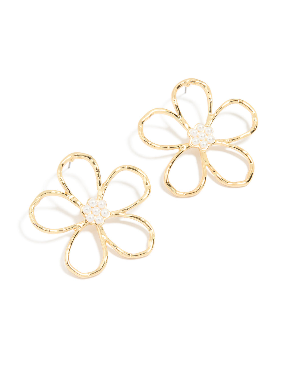 Gold Plated Pearl Flower Cut Out Textured Earrings