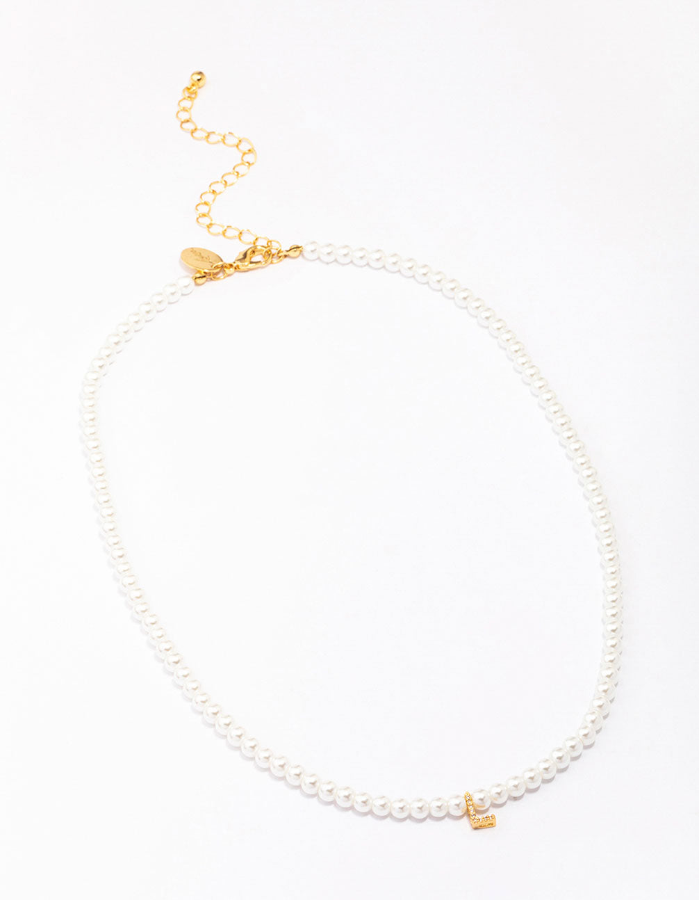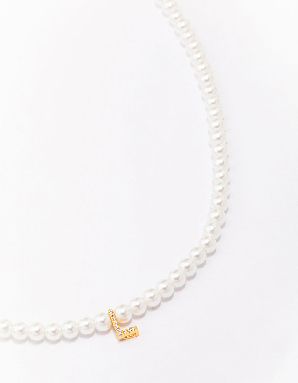 Personalise your stack with this gold plated pendant necklace. This unique chain features a strand of pearls, adorned with a letter L charm. Perfect for styling your own initials or the initials of a loved one!