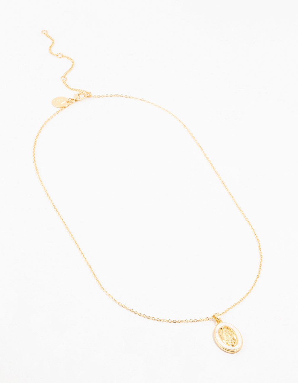 Gold Plated Pearlescent Mary Necklace Gold Plated Pearlescent Mary Necklace Gold Plated Pearlescent Mary Necklace