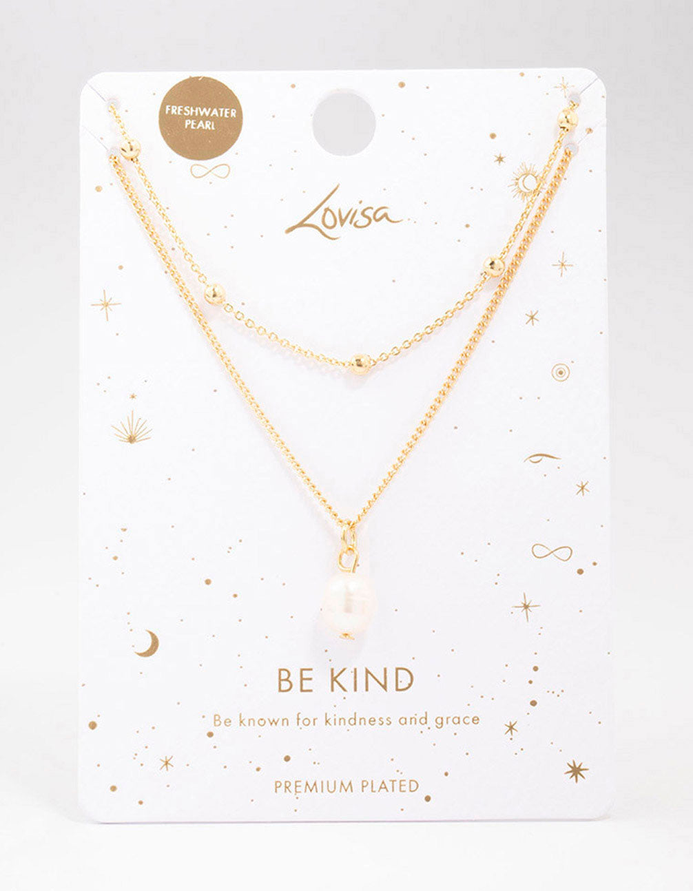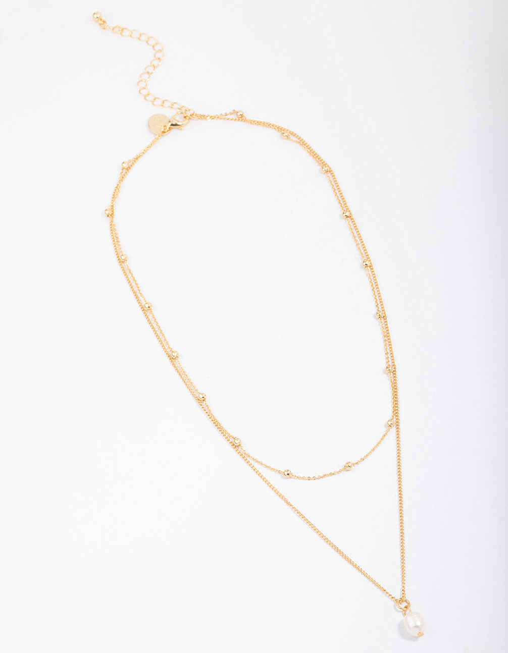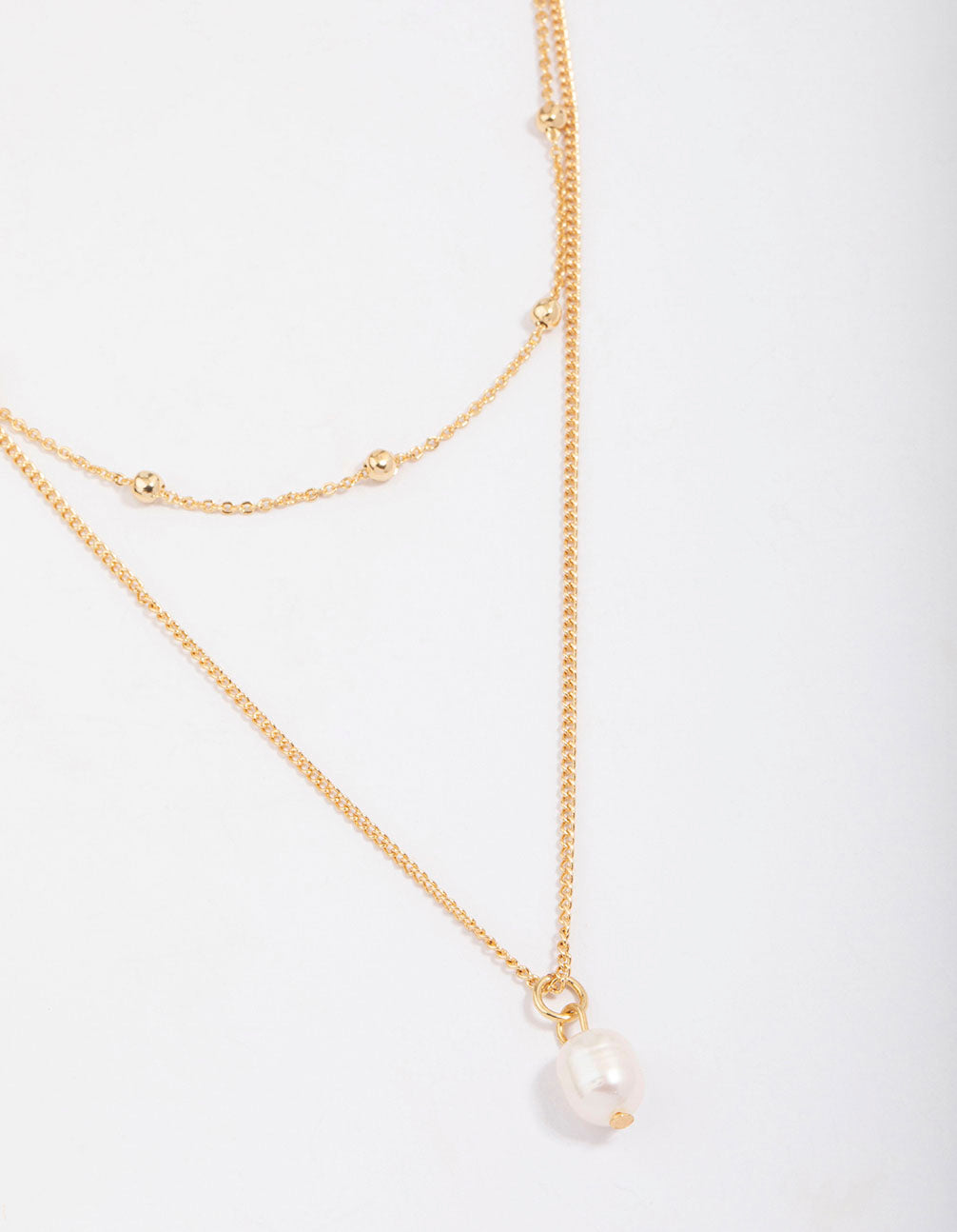 This layered chain is plated with real gold and features a large freshwater pearl pendant for a sophisiticated finish.