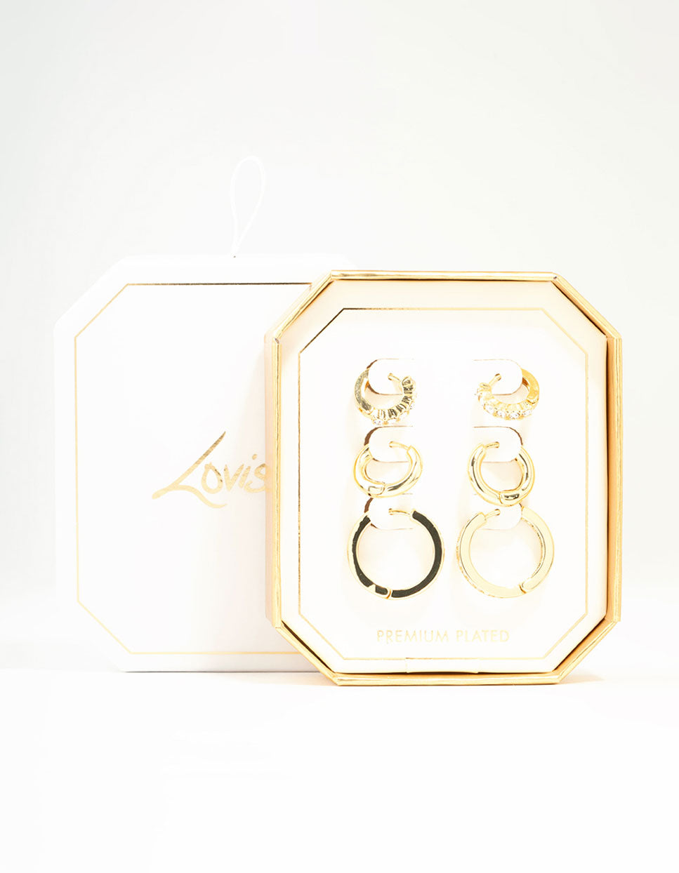 Gift your loved one with this stunning trio of hoop earrings. This set features three gold toned hoop styles including sleek and diamante styles for a hint of sparkle. Great for a loved one who likes to be able to mix and match styles.