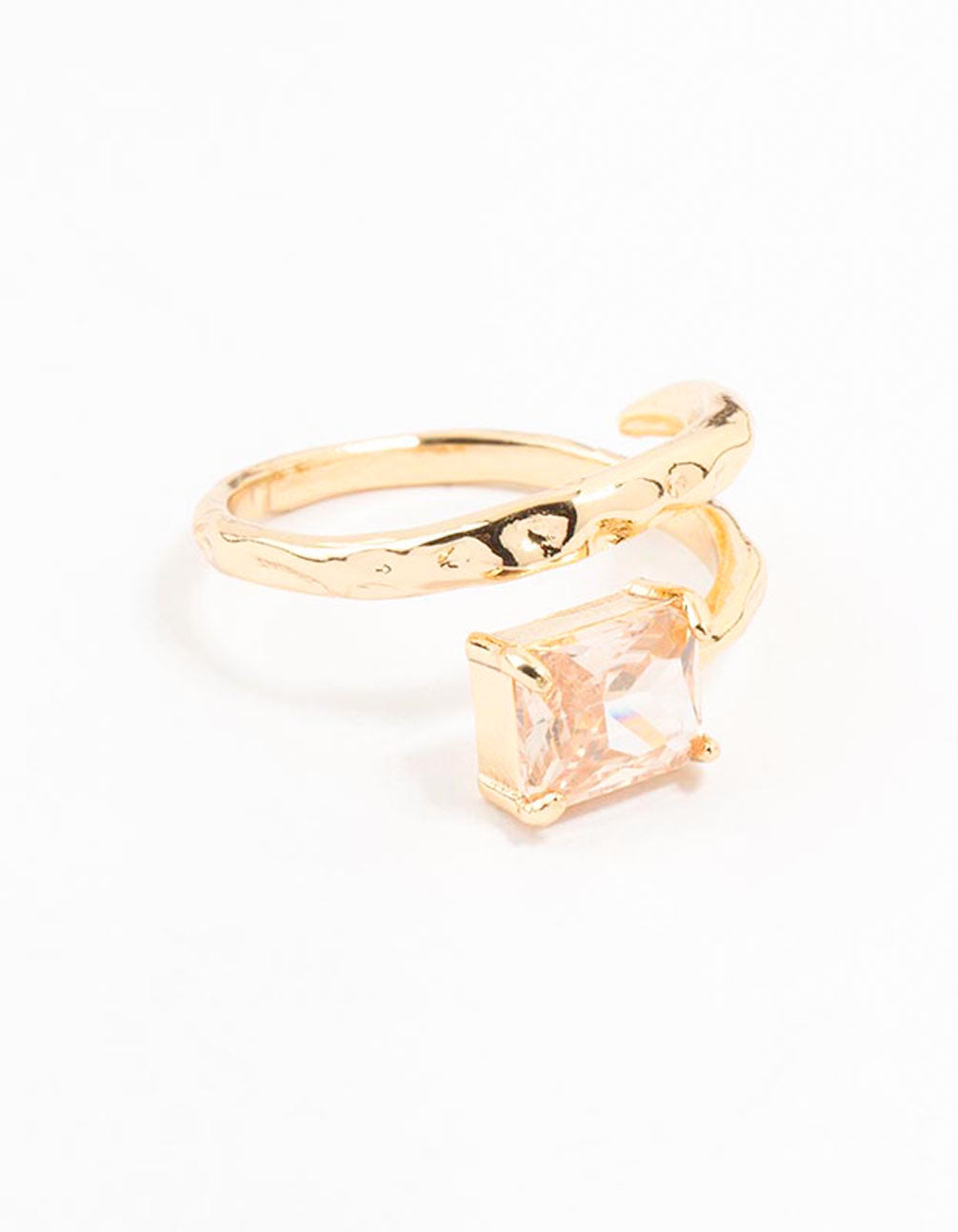 Elevate your style with this dazzling gold-plated ring featuring a striking rectangular silhouette and pretty rose gold hued crystal. Perfect for making a statement at any occasion or adding sophisticated flair to everyday ensembles.