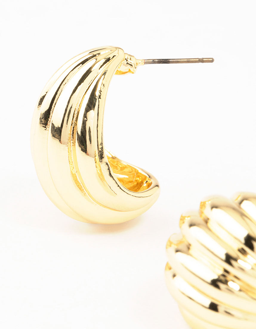 Slip on these captivating gold-plated hoops adorned with a ribbed design for an effortlessly chic vibe. The lightweight yet statement-making shape will elevate any look.