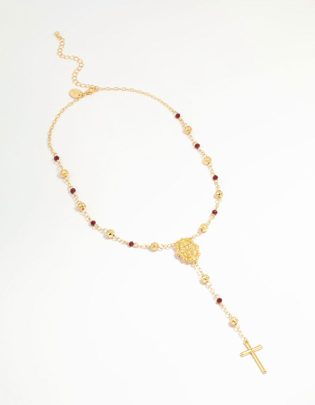 Gold Plated Rose Beaded Locket Cross Y-Necklace