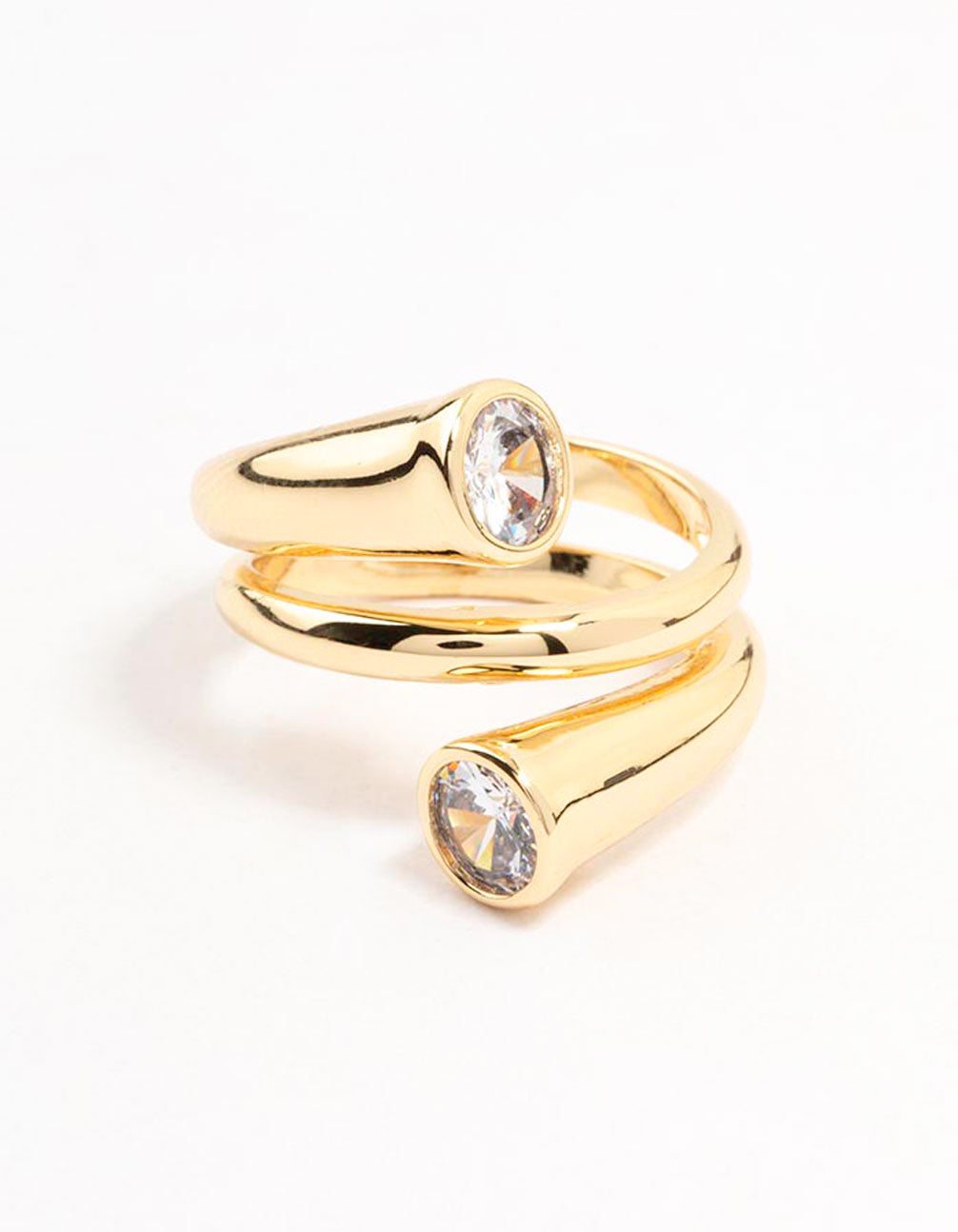 Gold Plated Round Cubic Zirconia Wrapped Ring