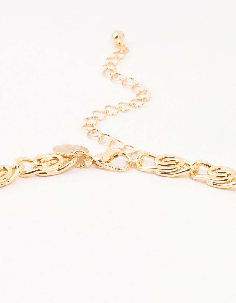 Curate a clean and sophisticated vibe with this striking necklace. This necklace features luxe gold plated metal and stunning scroll chain link features for that touch of bold, visual interest. Perfect for upgrading your style game.