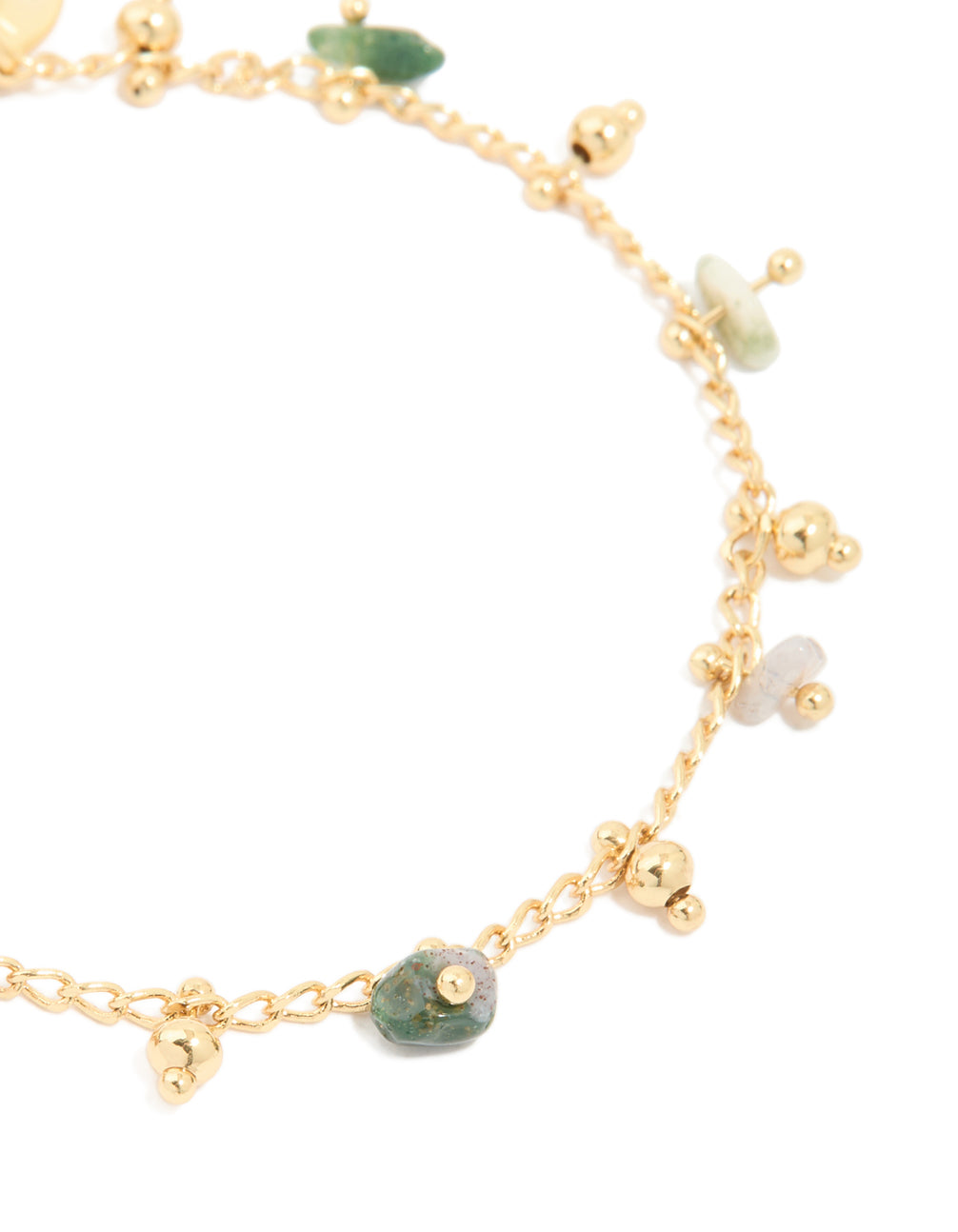 Add a touch of elegance to your look with this Gold Plated Semi Precious Stones Bracelet. This stunning bracelet combines the timeless beauty of gold plating with the vibrant charm of semi-precious stones. Perfect for adding a pop of colour and a hint of sophistication, this bracelet is ideal for any occasion – from casual brunches to evening soirées. The semi-precious stones are not only beautiful but are also believed to hold healing properties and help cultivate good vibes, making this bracelet as meaningful as it is stylish. Pair it with a flowy dress for a boho-chic vibe or stack it with other bracelets for a cool, layered look. Whether you’re treating yourself or gifting someone special, this bracelet is a versatile and thoughtful choice for any jewellery collection.