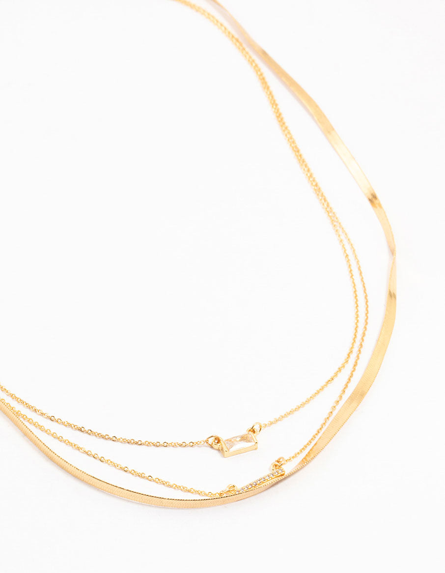 Rock the effortlessly cool vibe with this stunning layered necklace. It's got three chic layers: a sleek snake chain, a glam diamante bar, and a sparkling crystal pendant. Minimalist? Totally. Fabulous? Absolutely.