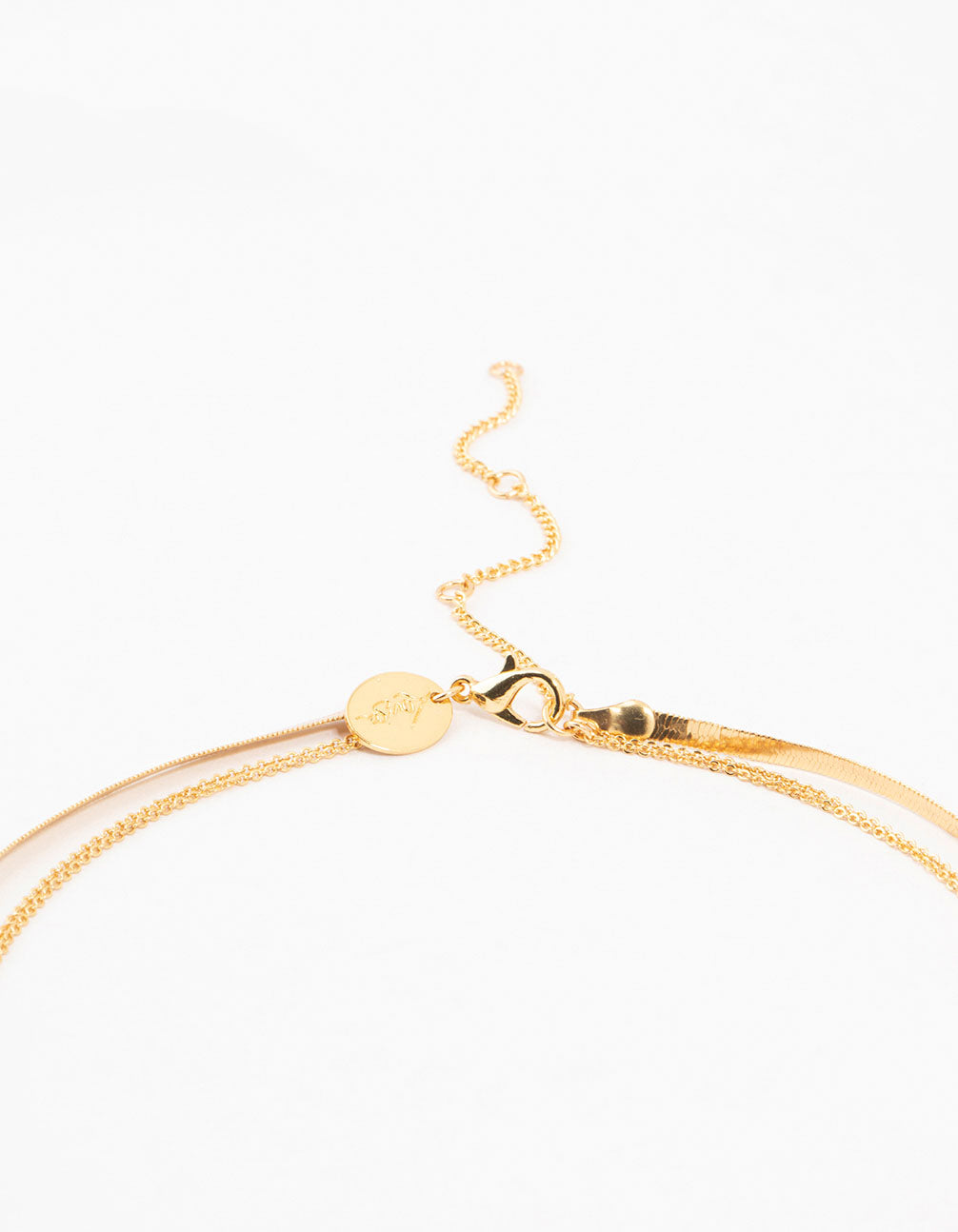 Gold Plated Snake & Diamante Crystal Layered Necklace