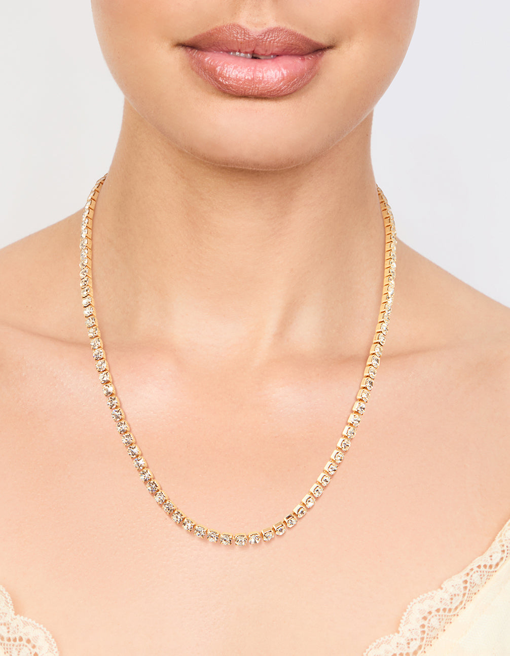 Shine bright in this Waterproof Gold Plated Stainless Steel Cubic Zirconia Tennis Necklace—a must-have for every jewellery lover! This chain necklace is crafted from durable stainless steel with a luxe gold plating, making it completely waterproof—perfect for swimming, sweating, or showering without a worry. Adorned with sparkling cubic zirconia crystals, this tennis-style necklace offers an elegant yet versatile vibe. Wear it with a sleek dress for a night out or layer it with other necklaces for a trendy, everyday look. Whether you're heading to a party, brunch, or even the gym, this crystal-studded beauty has you covered in style.
