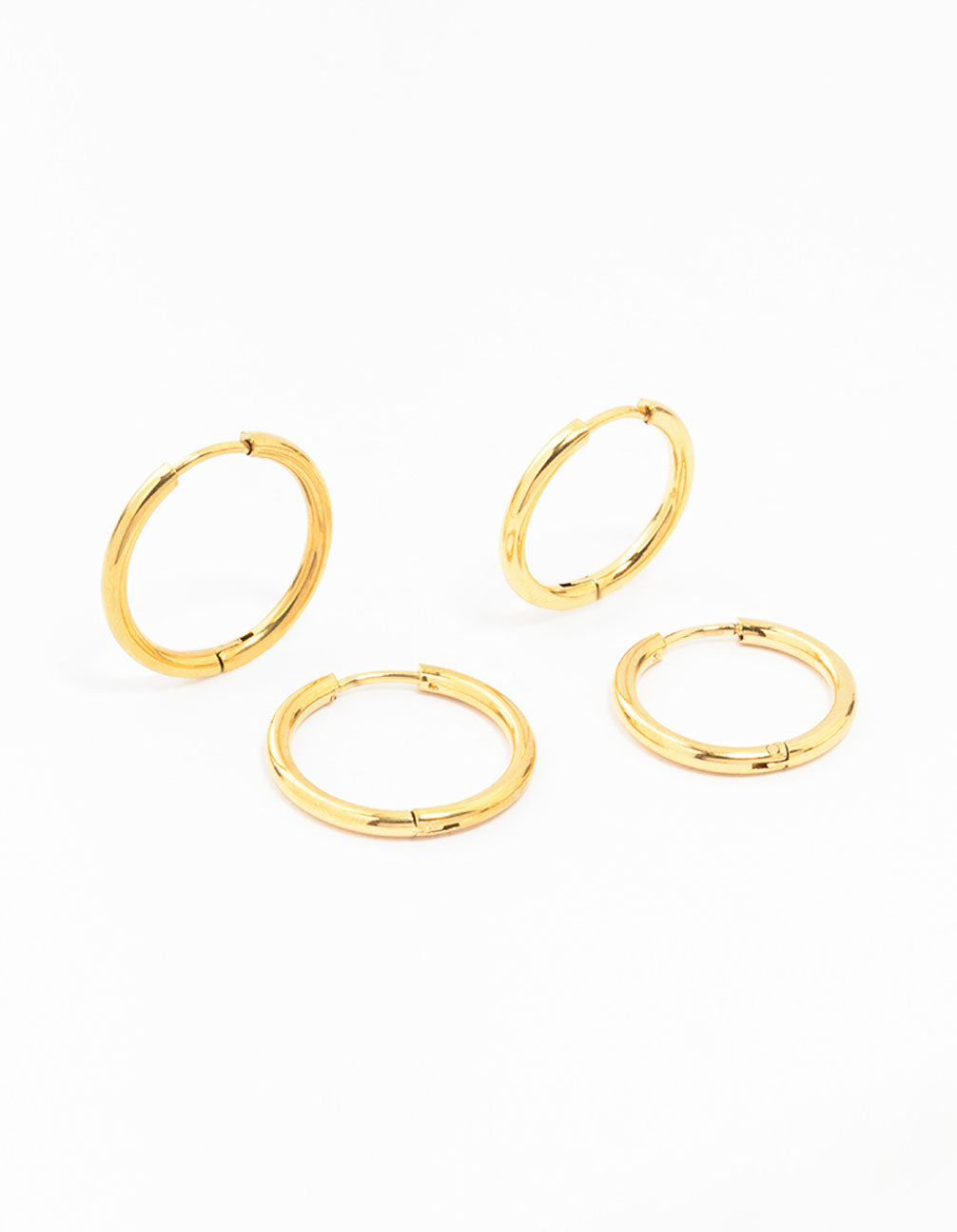 Waterproof Gold Plated Stainless Steel Mini Hoop Earrings 2-Pack Waterproof Gold Plated Stainless Steel Mini Hoop Earrings 2-Pack Waterproof Gold Plated Stainless Steel Mini Hoop Earrings 2-Pack