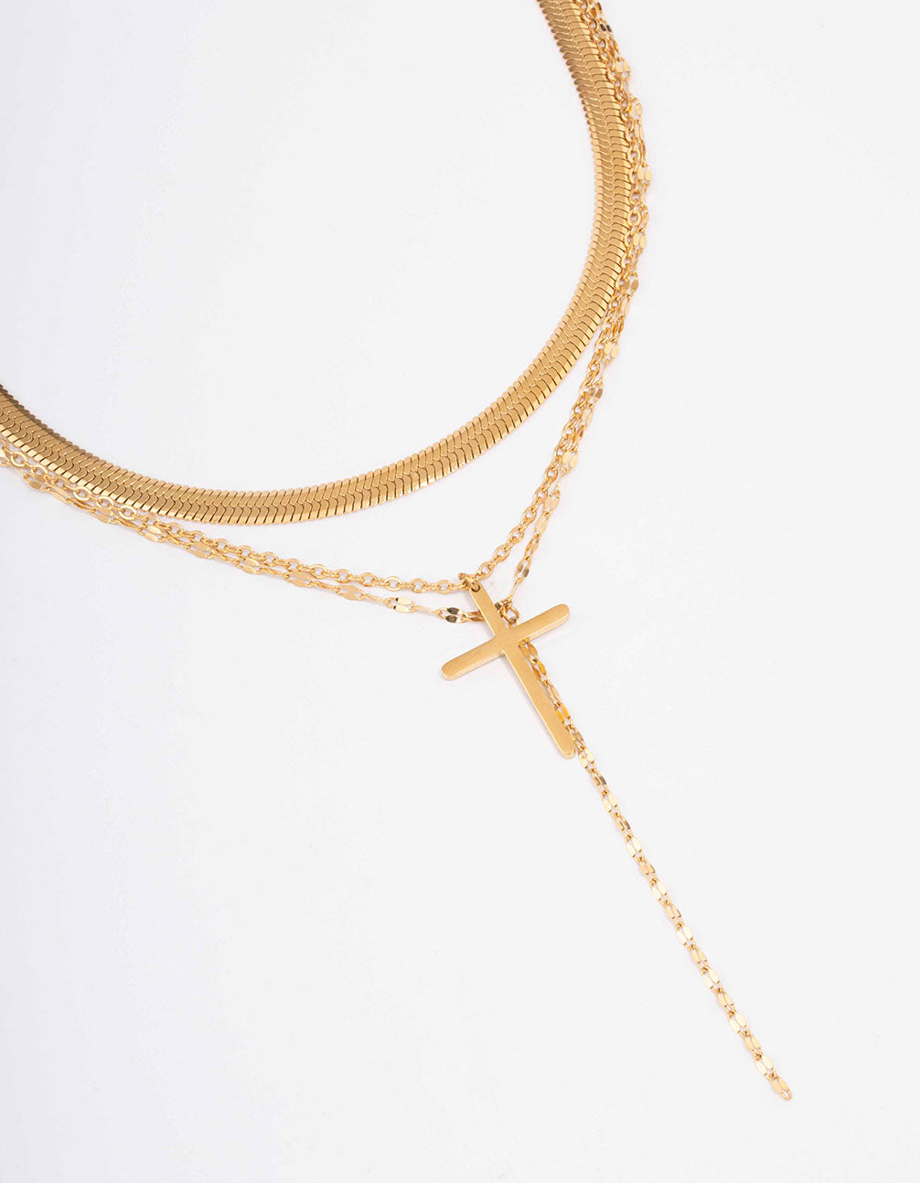 Waterproof Gold Plated Stainless Steel Multi Chain Cross Layered Necklace
