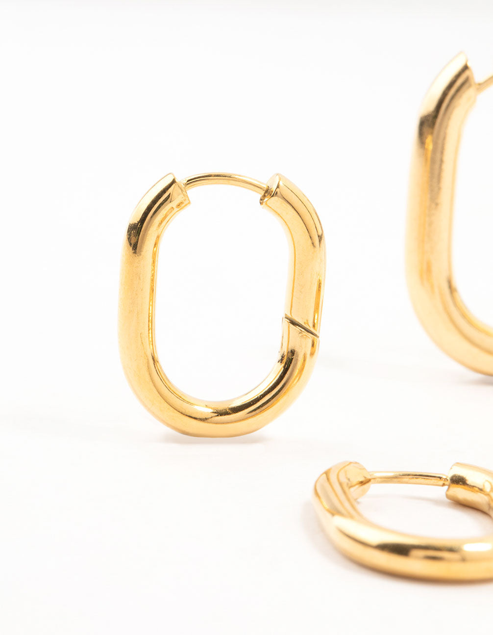 Waterproof Gold Plated Stainless Steel Square Oval Hoop Earrings 2-Pack