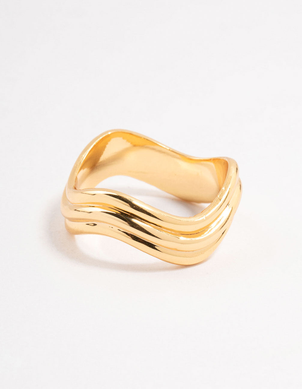 Waterproof Gold Plated Stainless Steel Wave Cocktail Ring