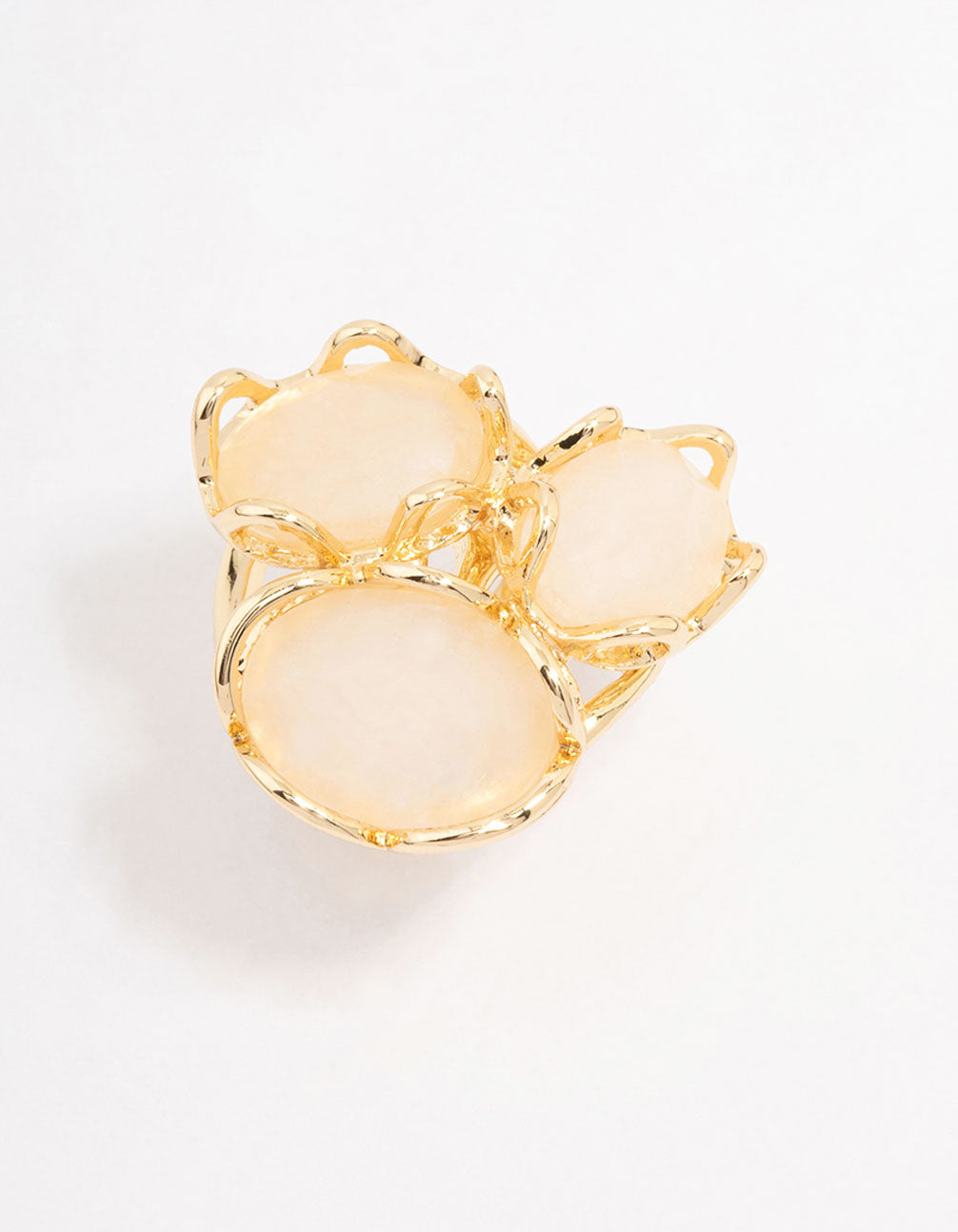 This eye-catching ring is plated with gold and feature an eye-catching trio design of semi-precious gemstones, perfect for adding a natural finish to your look.