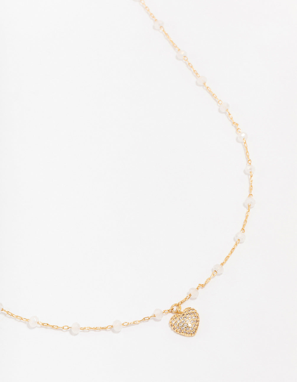Gold Plated Brass Station Puffy Cubic Zirconia Heart Pendant Necklace