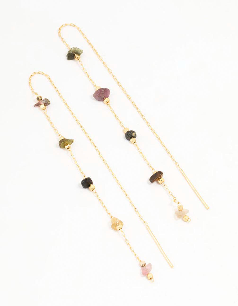 Meet your new go-to accessory: these Gold Plated Semi Precious Station Thread Through Earrings. These chic threader earrings combine effortless style with a touch of elegance, featuring a sleek gold-plated finish and delicate semi-precious stones. Perfect for dressing up your everyday outfit or adding subtle sparkle to an evening look, their lightweight design makes them ideal for all-day wear. Pair them with a floaty dress for brunch or a tailored blazer for date night—these versatile earrings will elevate any outfit. A must-have for anyone who loves minimalist jewellery with a hint of glamour!