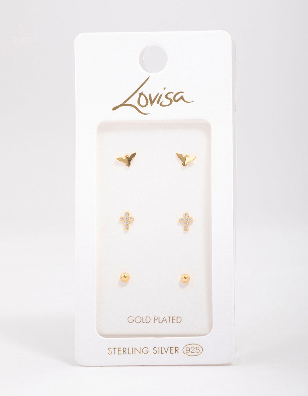 • Gold Plated Sterling Silver Bird & Rose Stud Earring 3-Pack - link has visual effect only