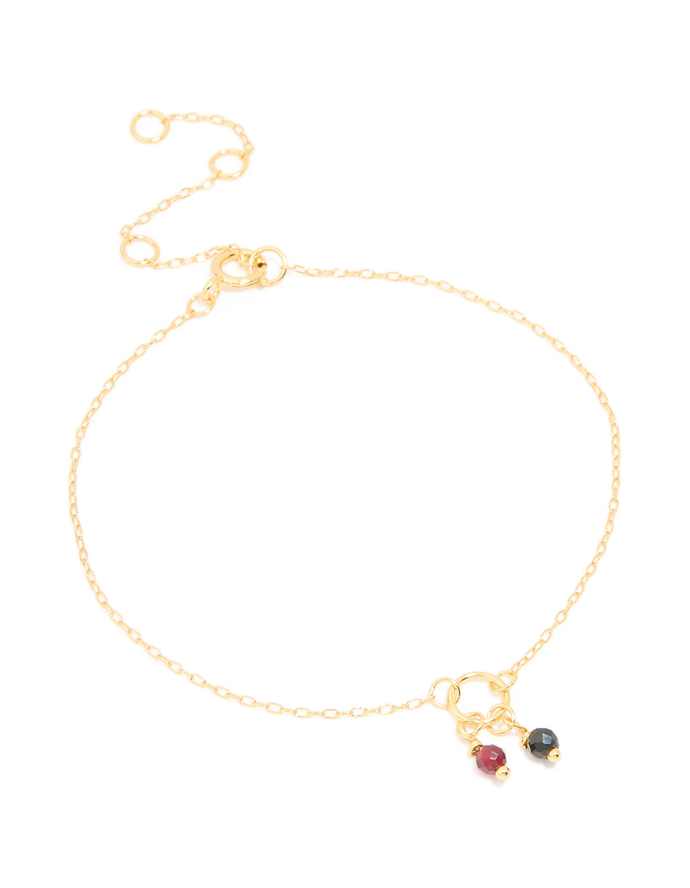 Add a little sparkle to your style with the Gold Plated Sterling Silver Cubic Zirconia Double Stone Bracelet. Crafted with sleek sterling silver and finished with a luxurious gold plating, this bracelet is adorned with shimmering cubic zirconia crystals along with two unique stone charms. Whether you're dressing up for a party or adding flair to your everyday look, this bracelet is a versatile must-have. Pair it with a flowy dress for a chic vibe or layer it with other bracelets for a trendy stacked effect. Perfect for day-to-night wear, it's a dazzling addition to any jewellery collection.