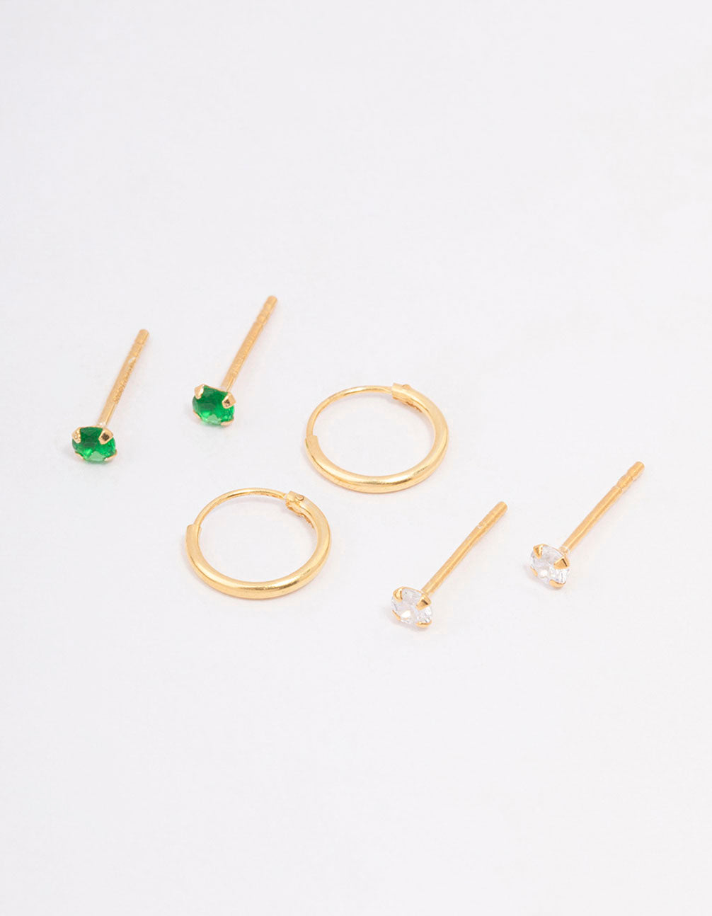 This pack includes one pair of huggie hoops and two cubic zirconia studs for a touch of sparkle.
