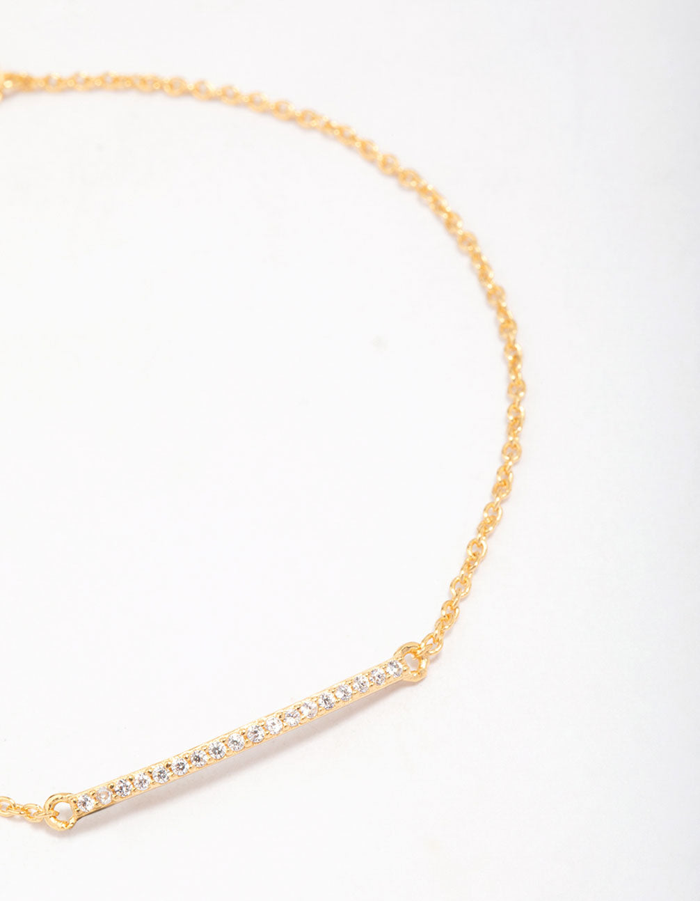 Gold Plated Sterling Silver Cubic Zirconia Fine Bar Chain Bracelet