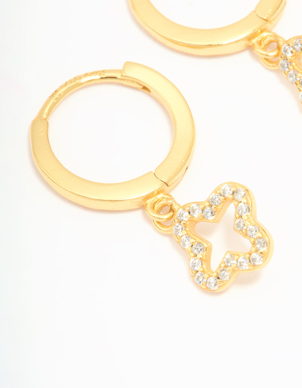 Gold Plated Sterling Silver Cubic Zirconia Flower Huggie Earrings