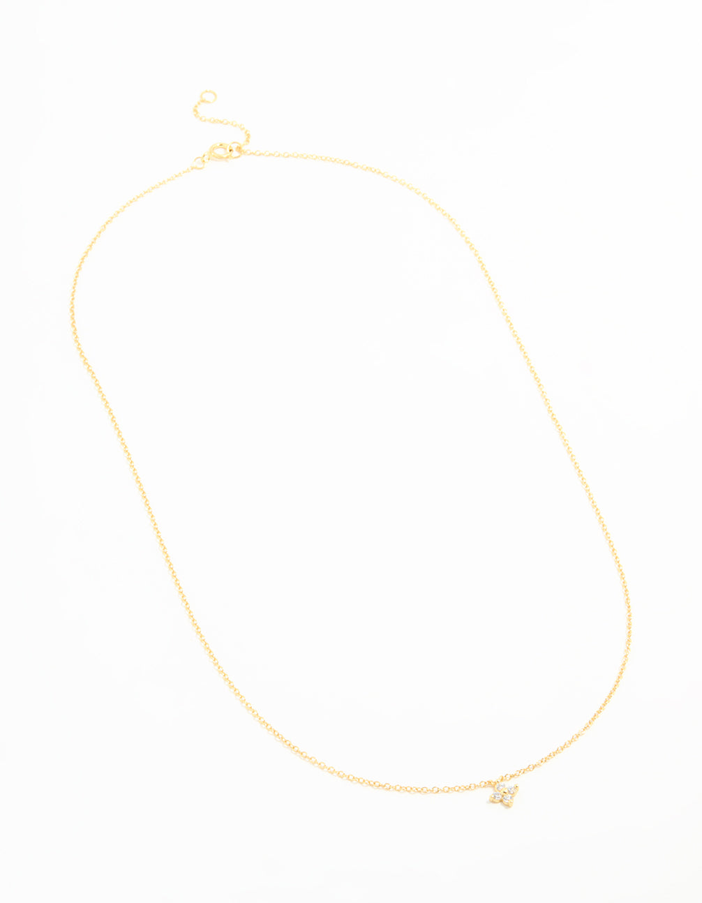 Gold Plated Sterling Silver Cubic Zirconia Flower Necklace