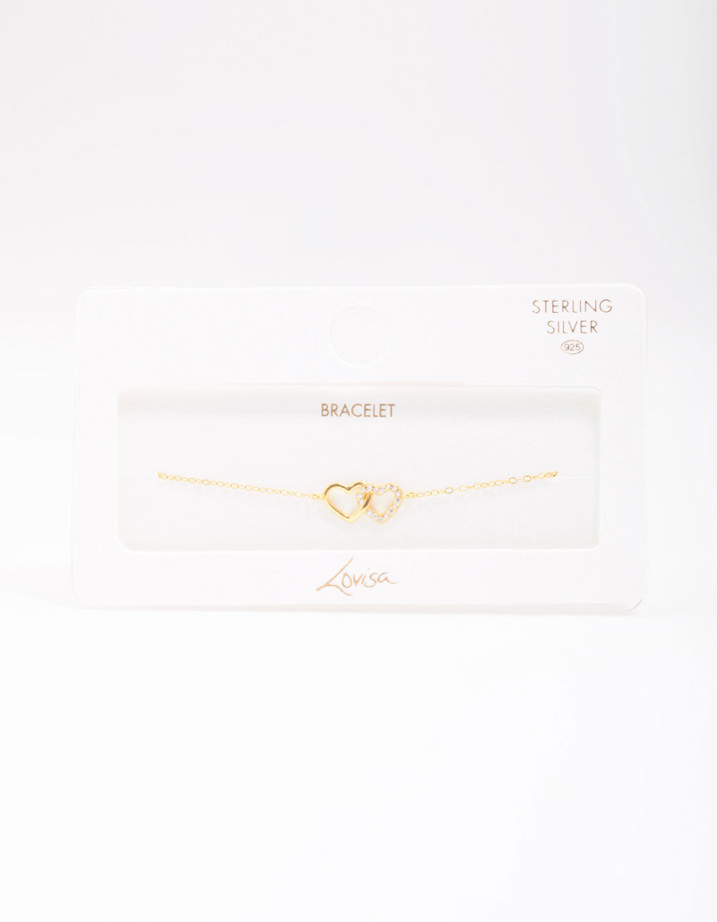 Add a signature touch to your look with this classic chain bracelet, This bracelet is crafted from genuine, 925 sterling silver and plated with real gold for a luxe touch. This chain bracelet is perfect for styling in your everyday stack, featuring an interlocking heart design for a decorative touch.