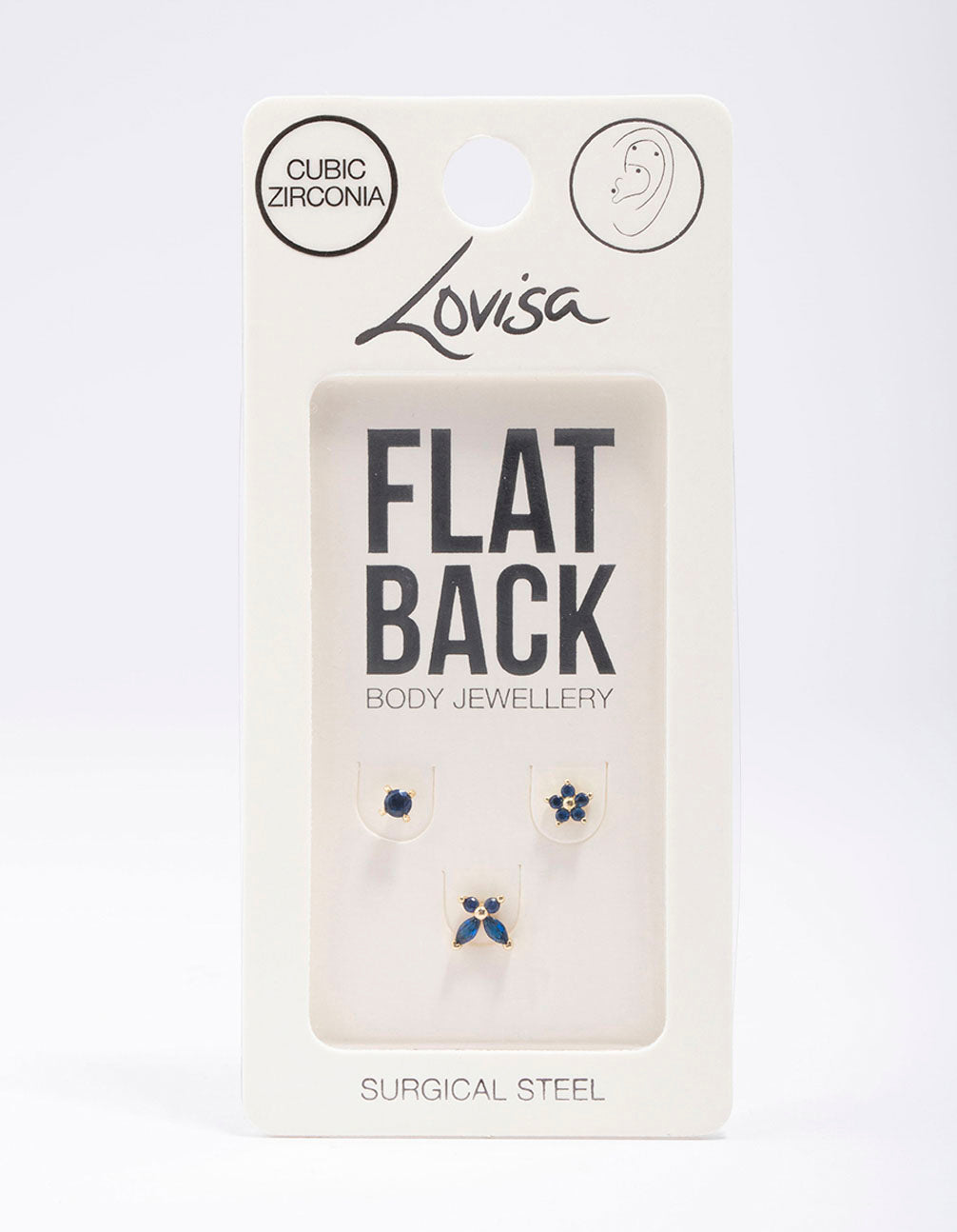 Gold Plated Surgical Steel Butterfly & Flower Flat Back 3-Pack
