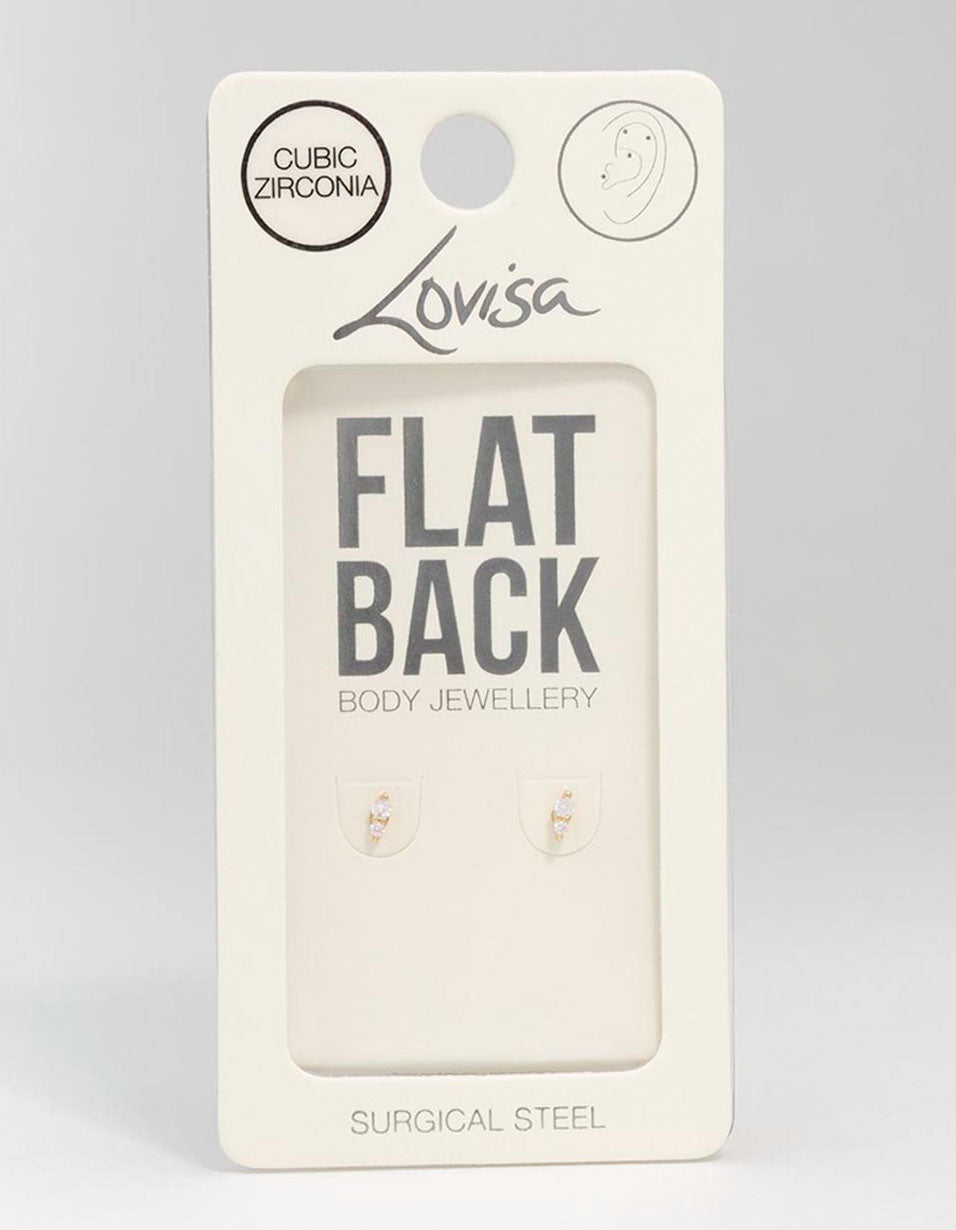 Gold Plated Surgical Steel Cubic Zirconia Double Flat Back 2-Pack Gold Plated Surgical Steel Cubic Zirconia Double Flat Back 2-Pack Gold Plated Surgical Steel Cubic Zirconia Double Flat Back 2-Pack